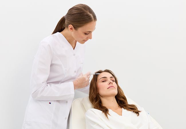 Ботулинотерапия (Ботокс, Диспорт, Ксеомин). Введение ботулотоксина для расслабления мышц и разглаживания мимических морщин (например, на лбу, между бровями, вокруг глаз).
